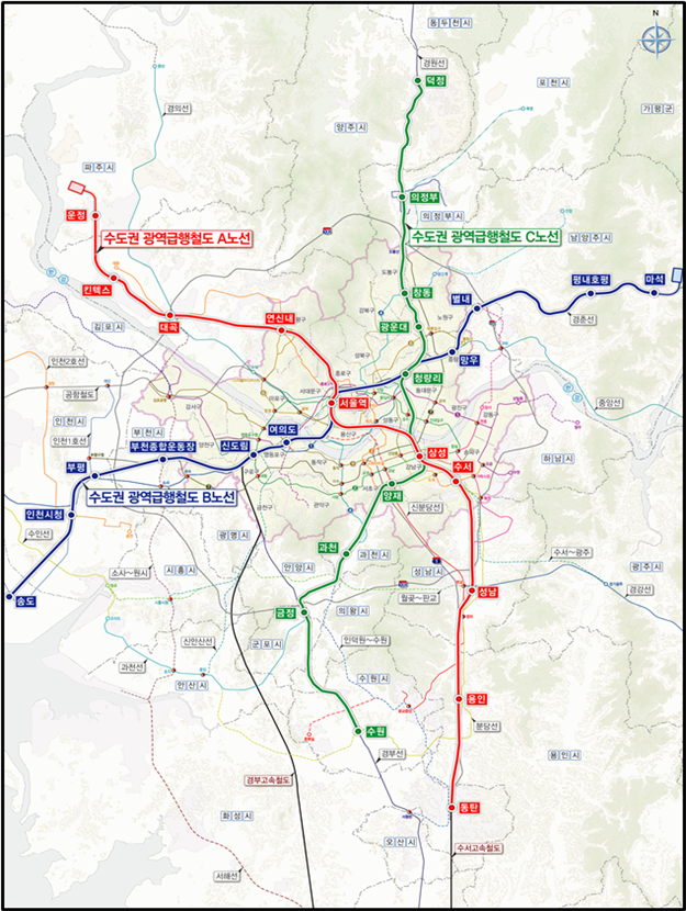삼성~동탄 39.5km, 1조 9,408억 원, ’14~’23년 파주~삼성 46.0km, 3조 4,628억 원, ’18~’23년