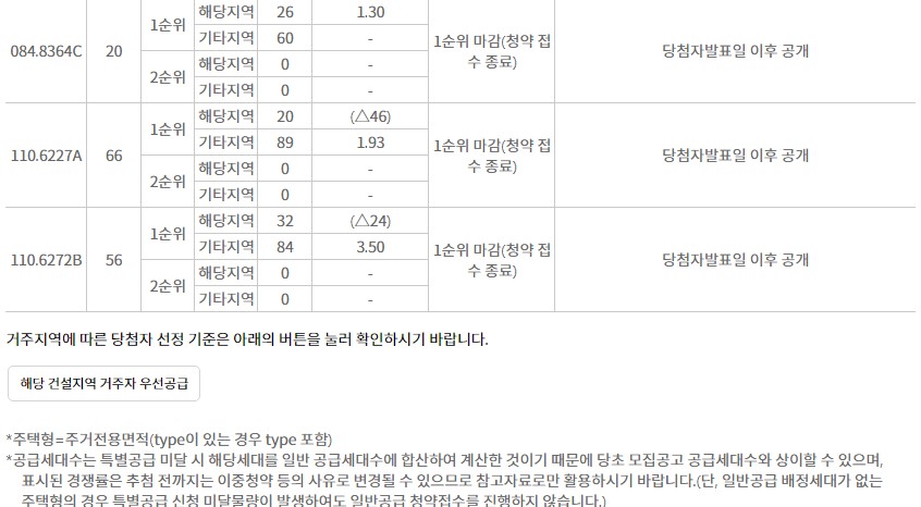세대수가 적은 40평형대의 청약률은 1순위에서 마감 되었고