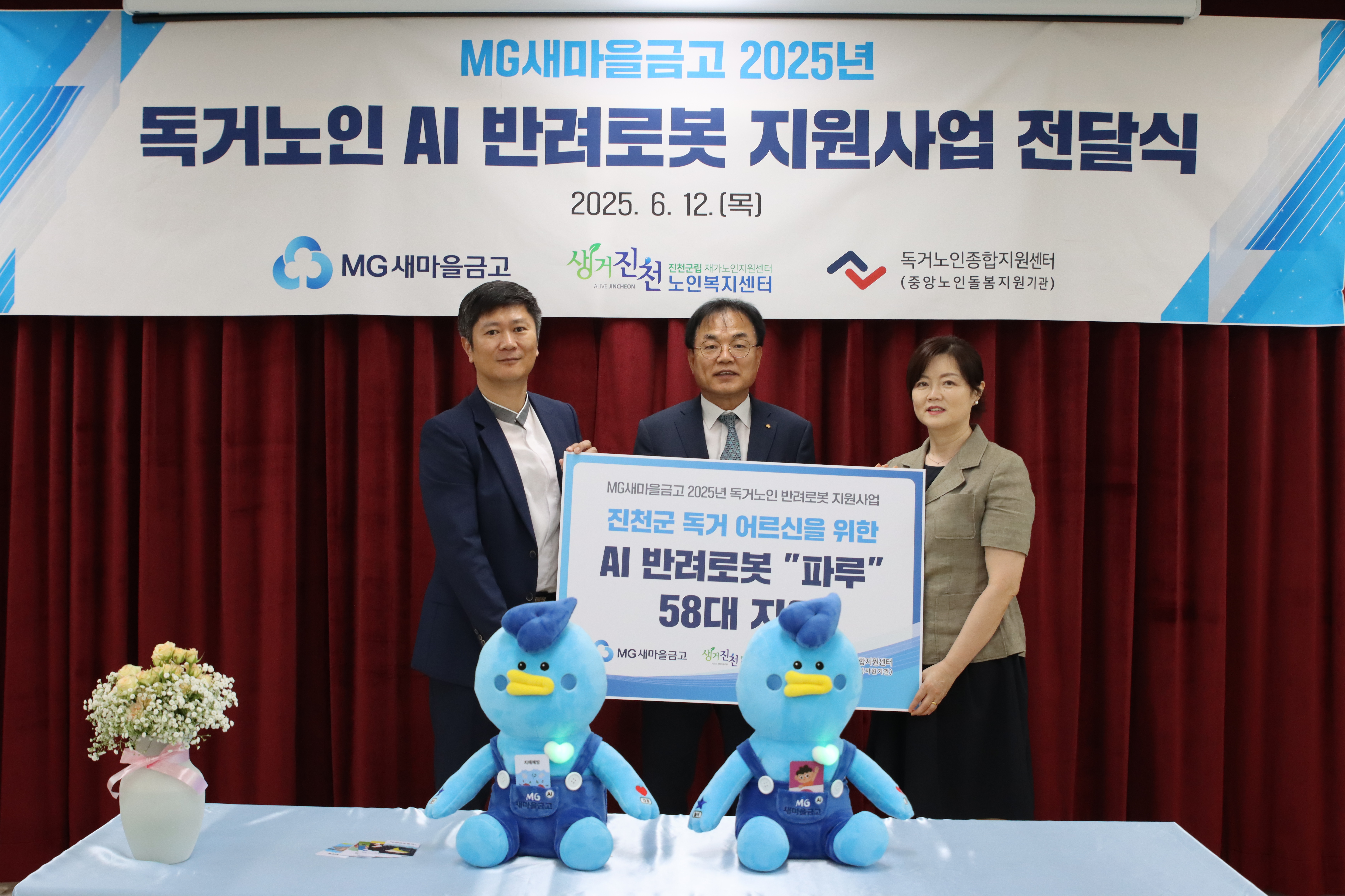 이에 앞서 지난 12일에는 생거진천 노인복지센터에서 AI 반려로봇 ‘파루’ 전달식을 개최하기도 했다.